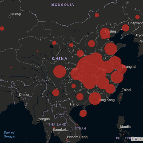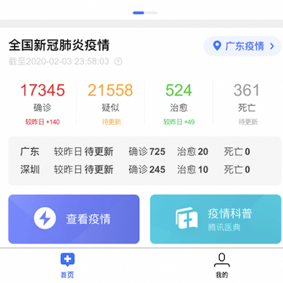 Chinese social media giant WeChat updates the 2019-nCoV spread. (red: infected; orange: suspected; green: recovered; gray: dead)